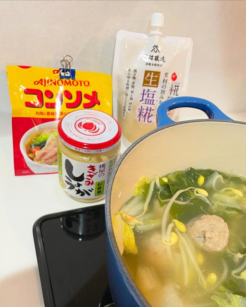 ・味付け 塩麹大さじ1、コンソメ粉大さじ1、生姜大さじ1